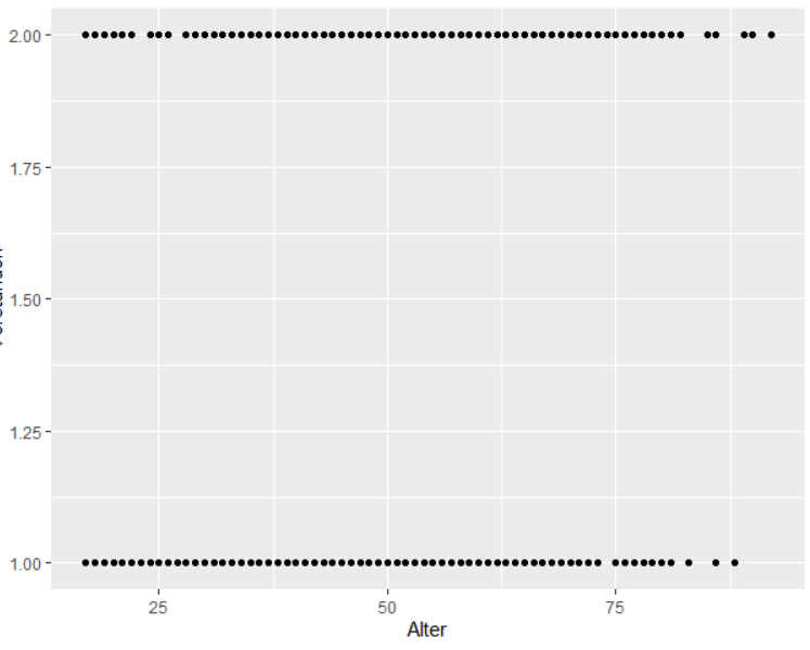 Die Regression (mit Histogramm, p-Wert usw.) scheint zu stimmen. Da allerdings hinter den numerischen Zahlen (z.B. ja oder nein bzw. männlich oder weiblich) steht, würde ich gerne im Histogramm statt 1 + 2 die Wörter Ja und Nein stehen haben.