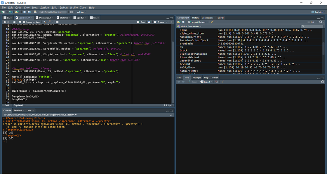 Fehler in cor.test.default(BA$IN03_01, CS, method = "spearman", alternative = "greater") :