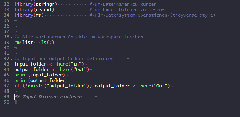 Ich habe das Problem, dass wenn ich in R-Studio den Cursor auf eine leere Zeile setze, mir automatisch ein ## Vorschlag generiert wird. - siehe Bild Zeile 49.
