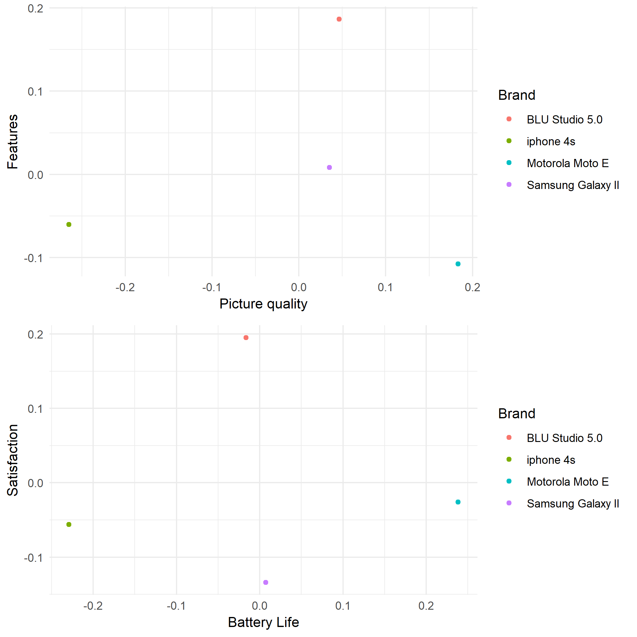 labs(x = "Battery Life", y = "Satisfaction", color = "Brand") +