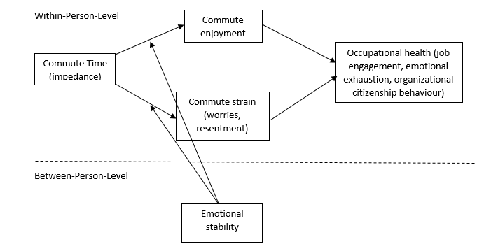 Meine Hypothesen zielen in die Richtung, dass in Monaten, in denen Individuen relativ länger zur Arbeit pendeln müssen, sie das Pendeln als beanspruchender erleben und sich dies negativ auf den Arbeitskontext auswirkt (zB. weniger workengagement). (Bei relativ kürzeren Pendeldauern ist es dann entgegengesetzt, also weniger Beanspruchung und höheres workengagement). Emotionale Stabilität soll als Level 2 Prädiktor fungieren und interindividuelle Unterschiede in der Beziehung zwischen Pendeldauer und daraus folgender Beanspruchung erklären.