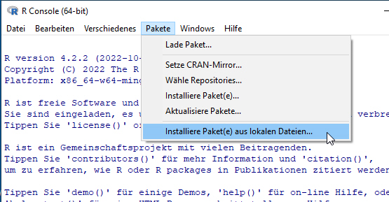 Ist es einfacher, alles neu zu installieren als diese Frage zu beantworten?bigben hat geschrieben: So Apr 02, 2023 9:24 amKann es sein, dass Du eine alte R Version hast? Vielleicht immer noch 3.6?