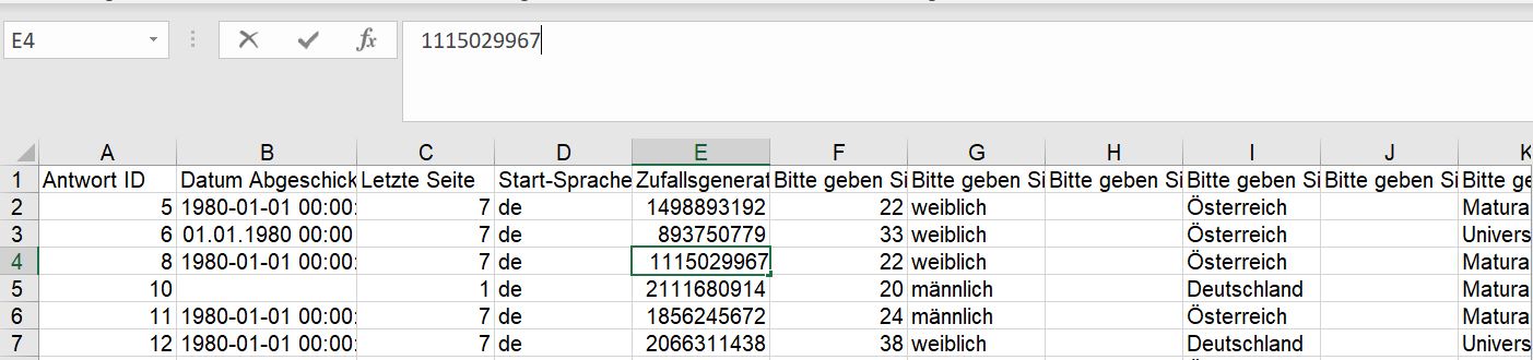 Sorry, dass ich so nervig bin, aber ich habe die Datei jetzt nochmal leicht verändert als Excel-Arbeitsmappe abgespeichert. Das Einlesen scheint zumindest auf den ersten Blick auch funktioniert zu haben, allerdings stimmen bei genauerer Betrachtung die Werte nicht überein. Einen Ausschnitt aus dem Excel-Datensatz habe ich als Anhang eingefügt