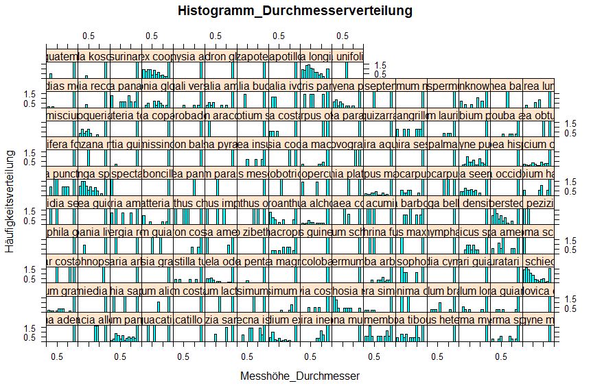 histogram(~ height_of_diam|spec, type = "density",data = data_19, ylim = c(0,1.7), xlim = c(0,1.5),main = "Histogramm_Durchmesserverteilung",xlab = "Messhöhe_Durchmesser",ylab="Häufigkeitsverteilung")