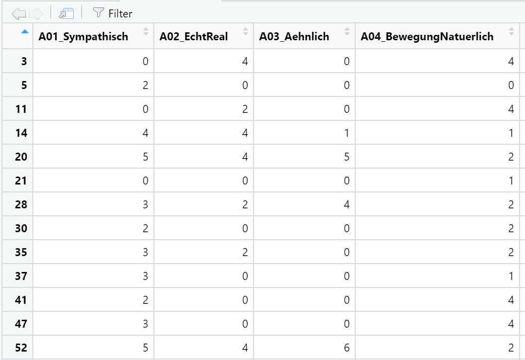 Ich habe folgendes Problem: Für meine Bachelorarbeit habe ich Daten erhalten mit denen ich eine exploratorische Faktorenanalyse durchführen werde. Allerdings scheitere ich gerade an einer Basic-Sache... Der oder die Erheber*in hat leider eine Skale von 0 - 6 verwendet statt von 1-7. Daher erkennt R die 0 nicht als Wert, sondern als NA an...