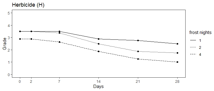 PS: Ich habe drei verschiedene Frostnächte (1,2,4) und visuell gemessen wurden Herbizidschäden.