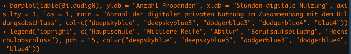 Label_x <- c("1 Stunde", "1 - 3 Stunden", "4 - 6 Stunden", "Über 6 Stunden")