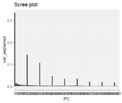 ich habe eine Principle component analyse mit prcomp() gemacht. Nun versuche ich eine Scree plot zu machen. Wenn ich mir diesen mit dem plot() Befehl anschaue ist alles in Ordnung. Wenn ich versuche die Grafik mit ggplot2 in schön zu machen kommt eine Grafik heraus in der die Werte der x-Achse in der falschen Reihenfolge kommen.