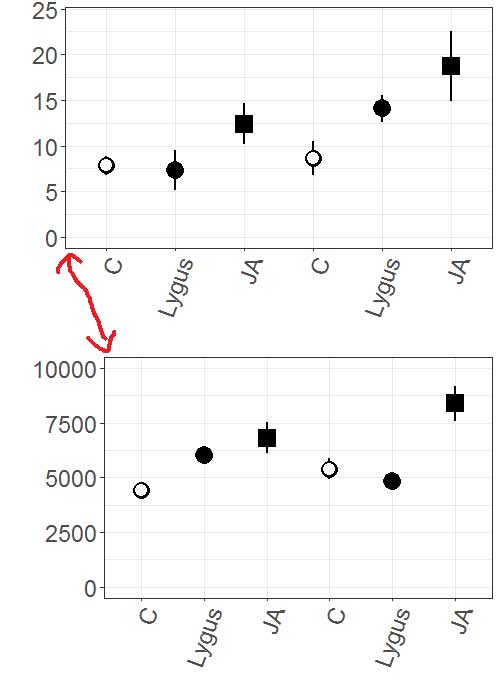 Ich möchte meine Daten gerne als mean +/- standard error darstellen (wie in der ersten Abbildung).