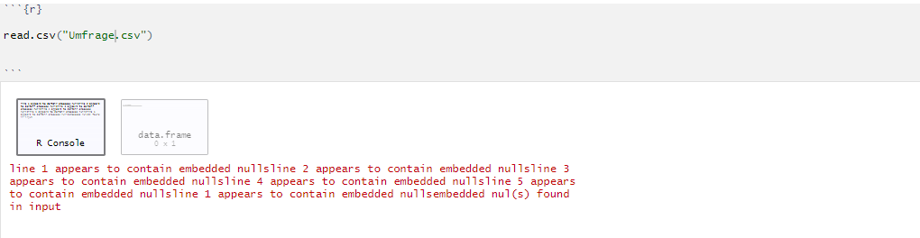 In R wollte ich sie dann, wie gesagt einlesen, was zu folgender Fehlermeldung führt: