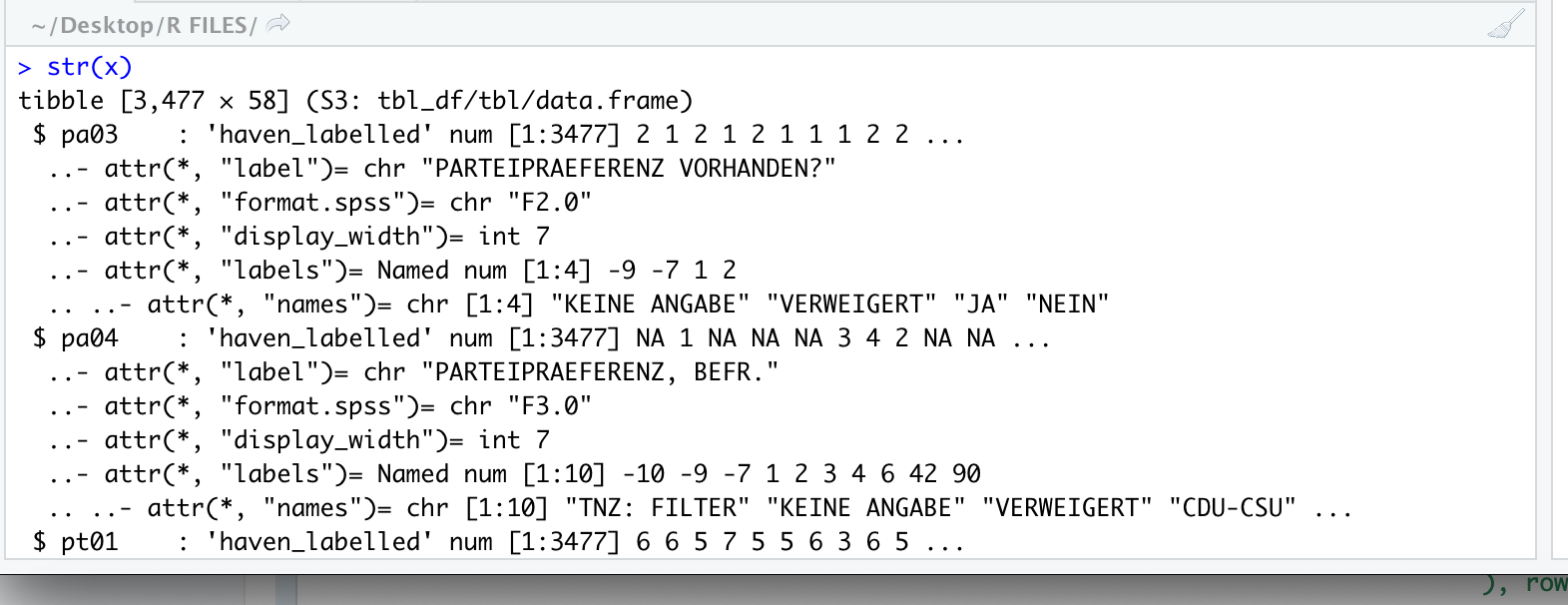 vielleicht ist str(as.data.frame(x)) übersichtlicher.