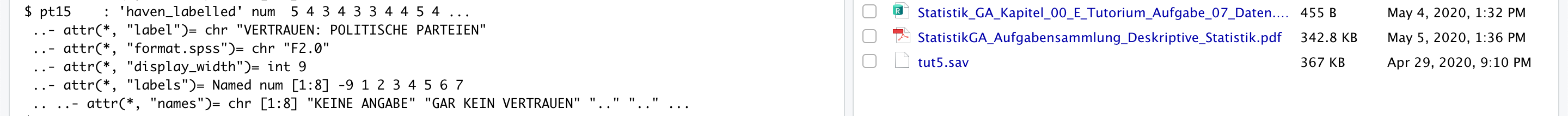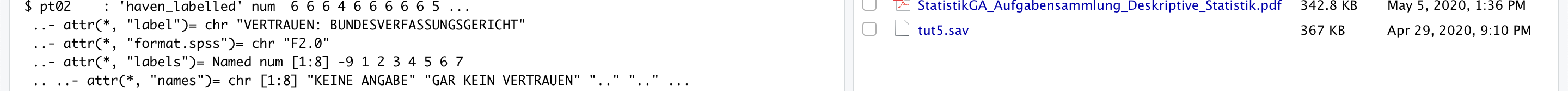 Die abhängigen Variablen beschreiben das Vertrauen in den Bundestag, B-Verfassungsgericht und Parteien. (Auf einer Skala von 0= kein vertrauen, bis 7= großes Vertrauen). Ich möchte diese nun zu einem einzigen additiven Index zusammenfügen, damit ich ihn mit unabhängigen Variablen (Bsp. Einkommen) verbinden kann. Ich probiere rowSums mal aus danke!