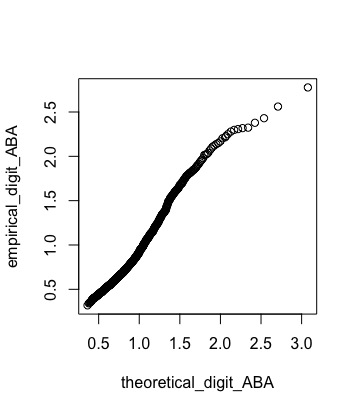 qqplot(theoretical_digit_ABA, empirical_digit_ABA, plot.it = TRUE)