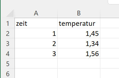 a) "zeit, temperatur" mag read.csv oder read.csv2 nicht und wird entsprechend interpretiert. Du solltest das Komma gegen etwas anderes austauschen (ich denke, Du solltest die Datei als CSV (Trennzeichen getrennt) speichern. Wenn "," der Separator ist, hilft b) weiter.