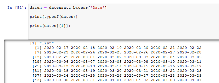 datensatz_btceur = read.csv("BTC-EUR.csv") print(typeof(datensatz_btceur)) daten_btceur = as.Date(as.character(datensatz_btceur$Date), "%Y-%m-%d")