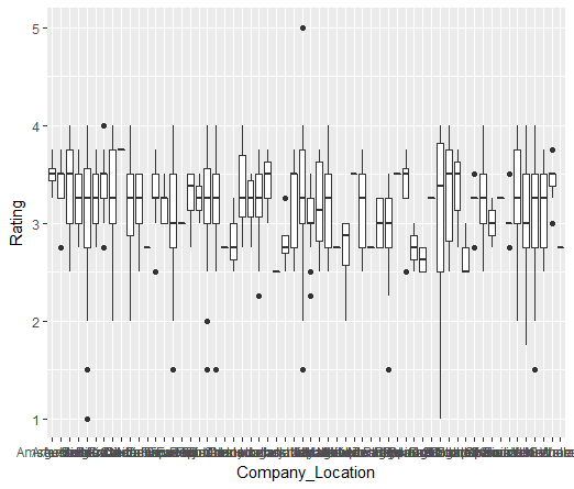 Ich habe ein Boxplot erstellt. Leider kann ich die Ergebnisse nicht deuten, da die Namen der einzelnen Ausprägungen zu lang sind und sich somit unlesbar überlappen. (Bsp. Ländernamen wie Frankreich, Deutschland, Italien usw....)