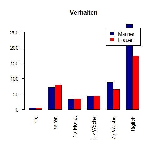 barplot(tableplot, xlab = "Häufigkeit", ylab = "frequency")