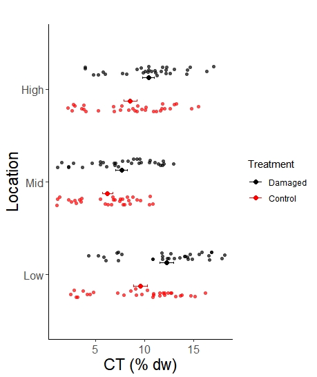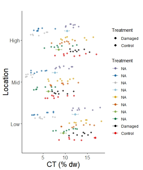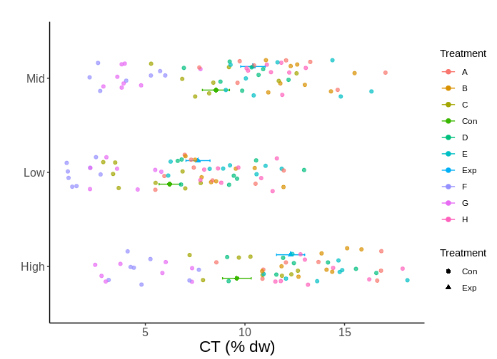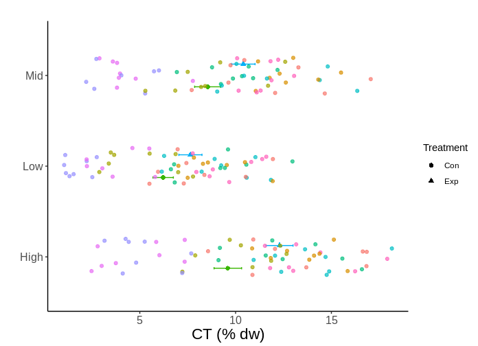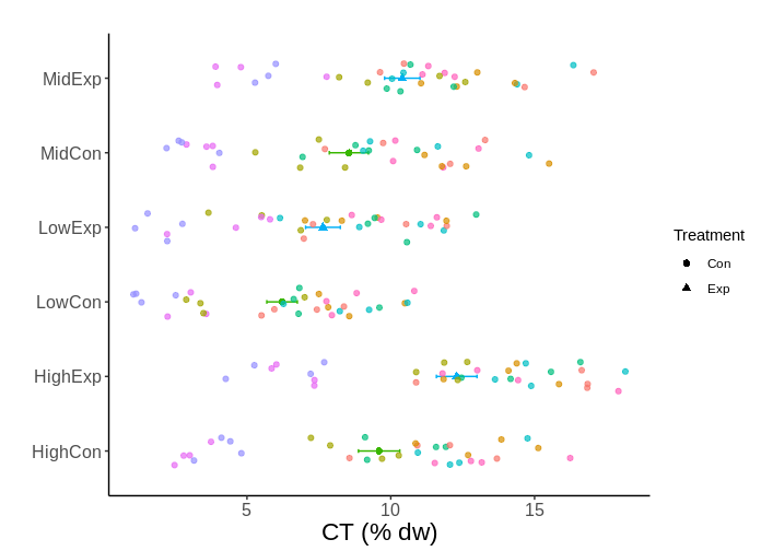 plot_CT<- ggplot(dta, aes(x=Location, y=CT, colour=Treatment,shape=Treatment)) +