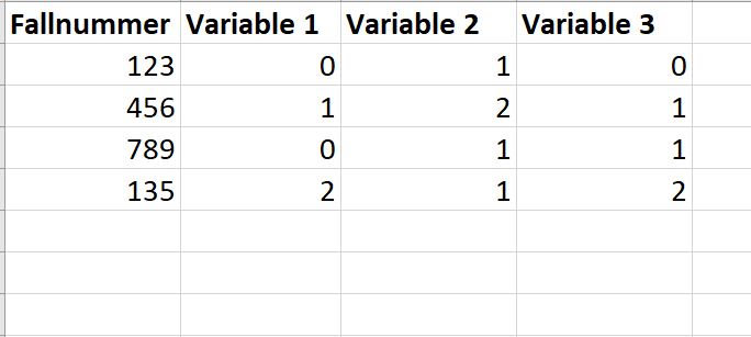 meine Ausgangsdaten sind pro Fall schon als Dummy eingetragen: