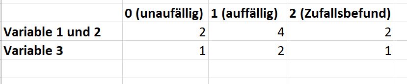 Die Labels der Dummys sind 0= unauffällig, 1= auffällig, 2= Zufallsbefund