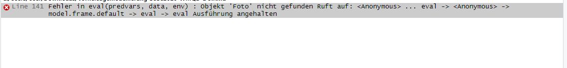 Vom Datensatz "Dataset" steht in Deinem Bildschirmfoto gar nichts - ich befürchte, Du wirst uns genuag von Deinem Code rund zum die Zeile 141 zeigen müssen, bis wir einen Fehler finden. Eigentlich wäre es an Dir, ein reprodzierbares Minimalbeispiel zu posten.jags962 hat geschrieben: Sa Aug 01, 2020 10:11 pmDer Datensatz "Dataset" ist aber vollständig und der Code läuft problemos durch.